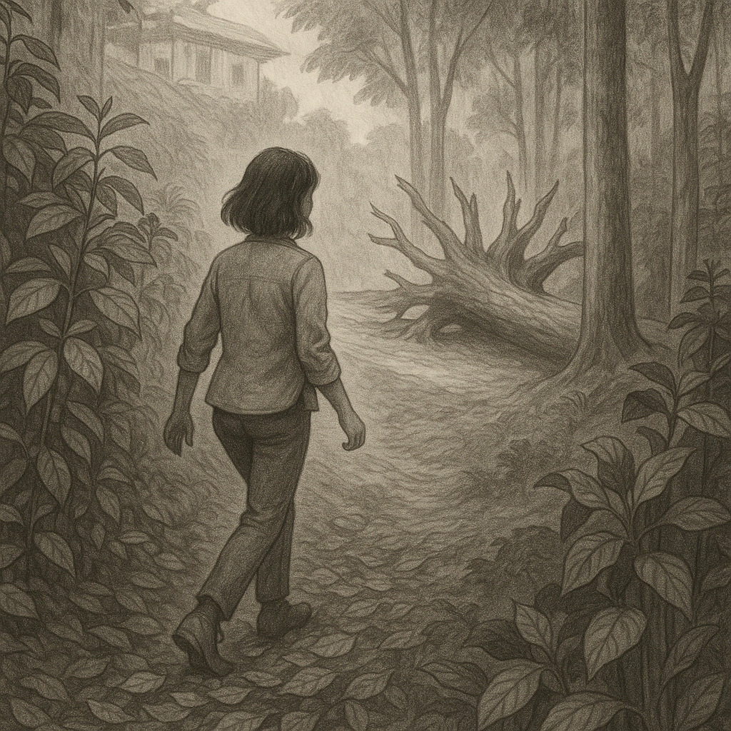 The second day after Mira reached there, she felt to move, to trigger her motion, so she wandered into the forest behind the homestay. The trail was thin and earthy, moss clinging to rocks like old promises.